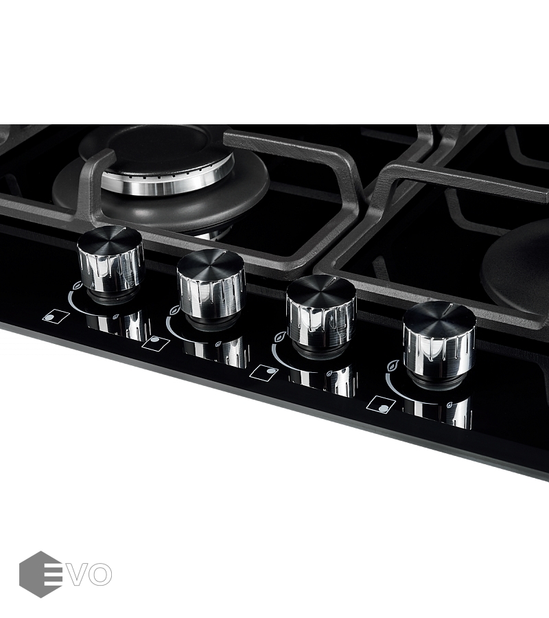 Удобное расположение 4 горелок, которые предполагают возможность использования любой ёмкости для приготовления блюд. Производительность одной конфорки 1 кВт, мощность второй и третьей составляет 1,75 кВт, последней — 2,5.