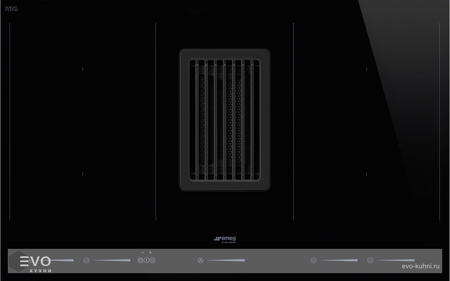 Индукционная варочная поверхность SMEG HOBD682D1 — варочная поверхность из стеклокерамики в черном цвете на 4 зоны нагрева с интегрированной по центру вытяжкой. Технология индукционного нагрева основана на воздействии электромагнитного поля на дно посуды, она позволяет точно регулировать температуру приготовления по 9 ступеням.