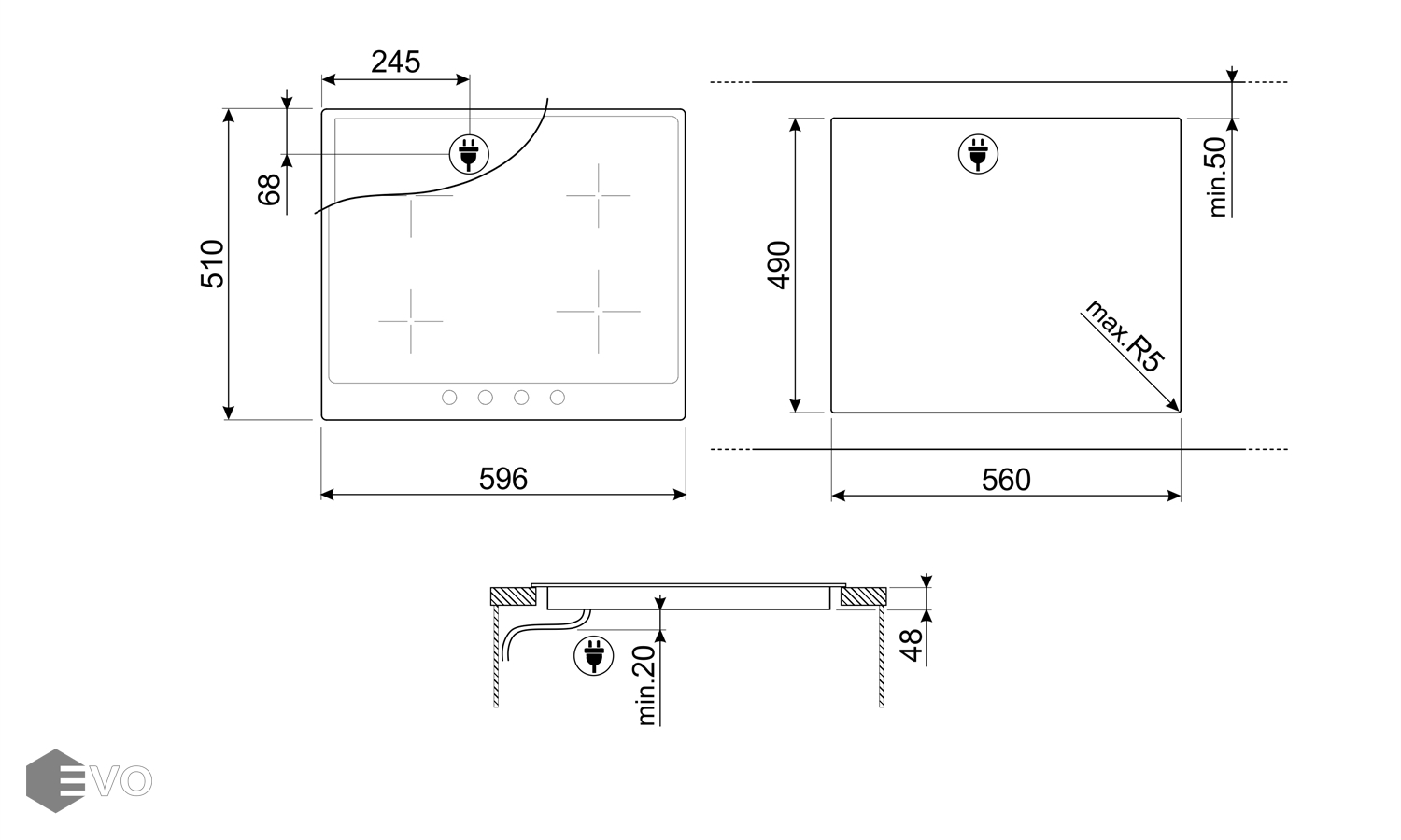 - Правая дальняя конфорка, диаметр/кВт: 148-214/1-2,2