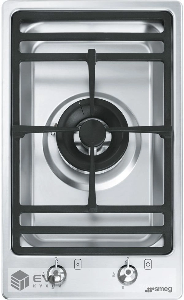 Газовая варочная панель SMEG PGF31G-1 – газовая варочная поверхность из нержавеющей стали предназначена для домашнего применения (приготовление и нагрев блюд). Установка возможна на различные жаростойкие материалы. Имеет конфорку двойной короны с функцией автоматического электроподжига. Отличительной особенностью является наличие предохранительного устройства – если конфорки случайно погаснут, то через 20 сек. даже при открытом кране прекратится подача газа. Решетка изготовлена из чугуна, крышка горелки эмалированная.