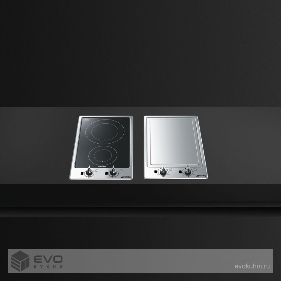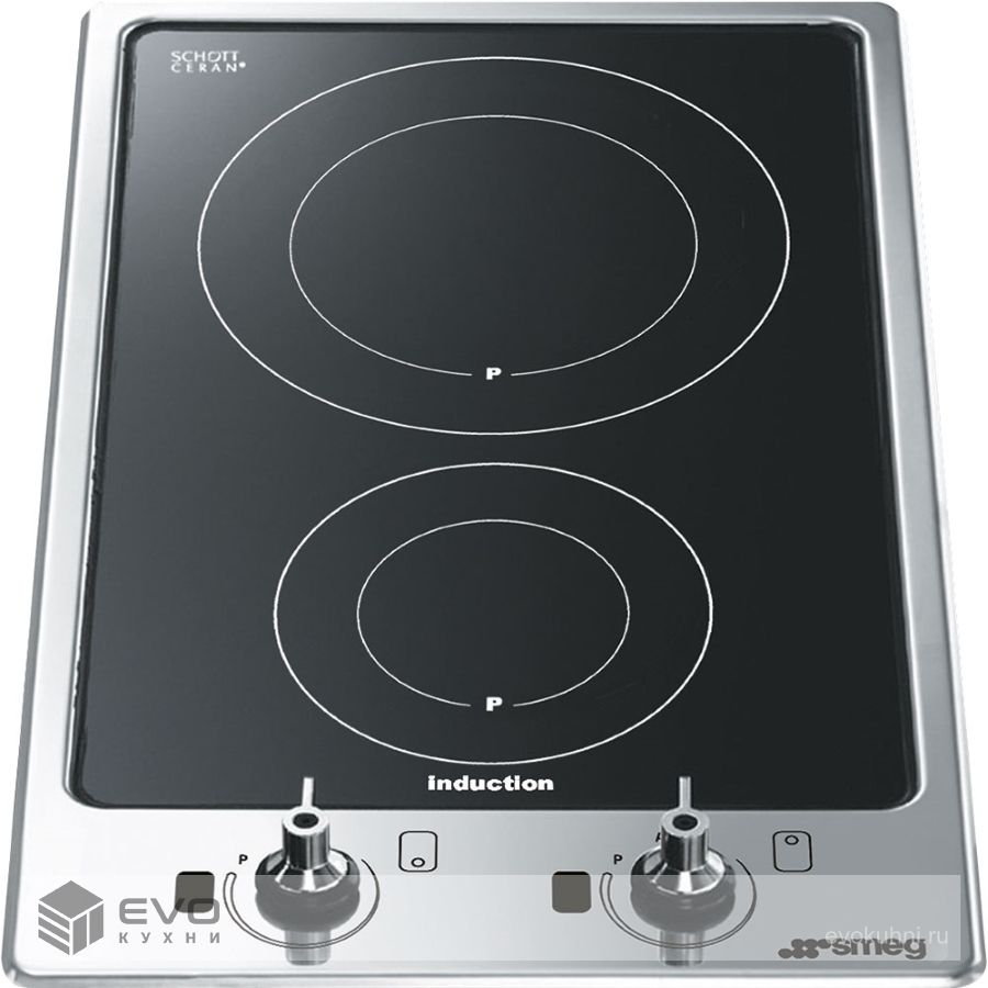 Индукционная варочная поверхность SMEG PGF32I-1 — поверхность оснащена двумя варочными зонами различных диаметров и мощностей. Их расположение ясно показано кругами, а тепло ограничено окружностями, начерченными на стекле. Символ, расположенный сбоку от ручек, обозначает управляемую зону приготовления. Для включения нажать и повернуть ручку в желаемое положение.