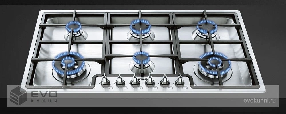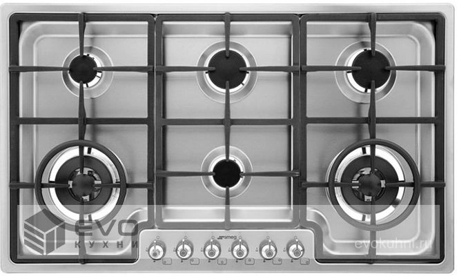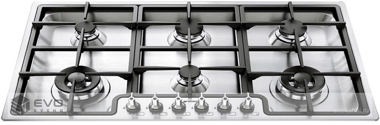 Газовая варочная панель SMEG PGF96 – газовая варочная поверхность из нержавеющей стали предназначена для домашнего применения (приготовление и нагрев блюд). Установка возможна на различные жаростойкие материалы. Имеет шесть конфорок с функцией автоматического электроподжига: 2 средние, 2 малые, 2 WOK. Управление осуществляется при помощи поворотных регуляторов.