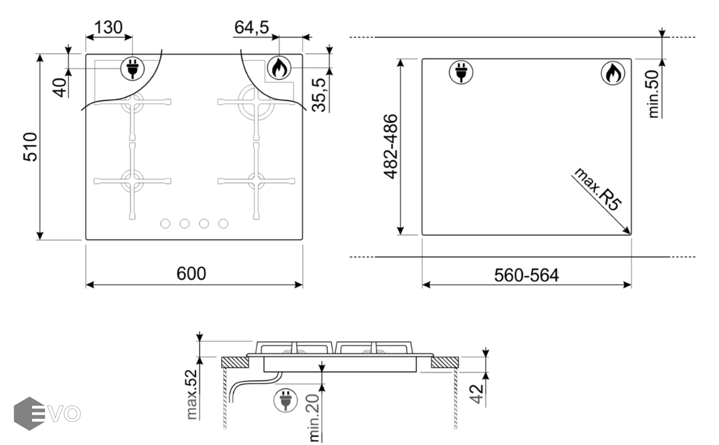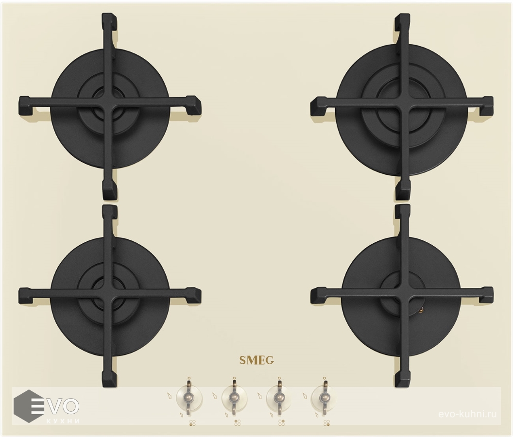 Газовая варочная панель SMEG PV864PO – газовая варочная поверхность в стиле ретро, выполнена из закаленного стекла и предназначена для домашнего применения (приготовление и нагрев блюд). Установка возможна на различные жаростойкие материалы. Имеет четыре конфорки с функцией автоматического электроподжига: 1 маленькая, 2 средние, 1 большая. Управление осуществляется при помощи поворотных регуляторов.