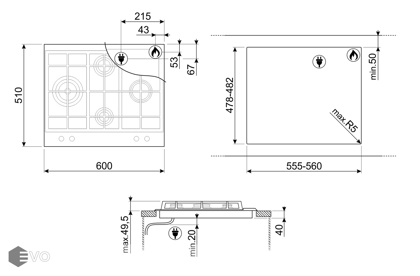- Ширина, мм: 600