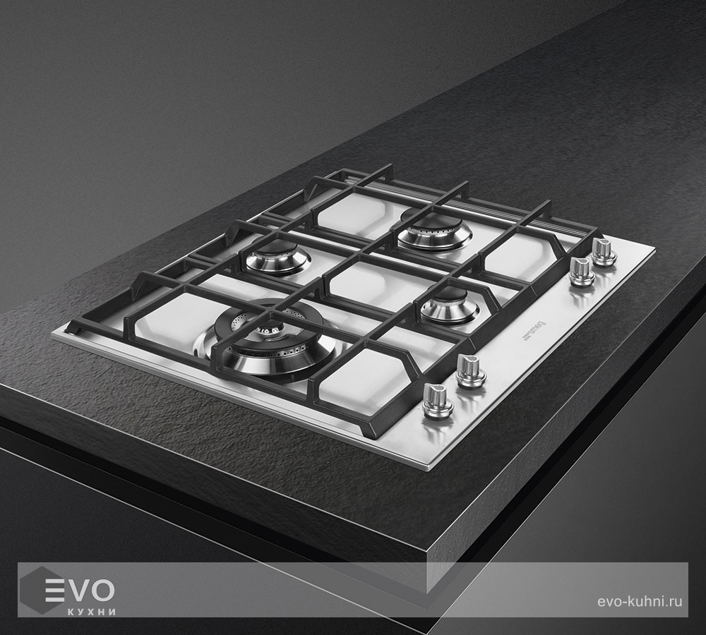 - Цвет поворотных переключателей конфорок: нержавеющая сталь матовая