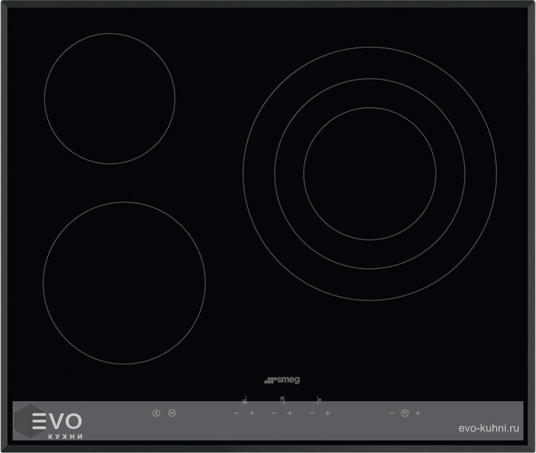 Электрическая варочная панель SMEG SE363ETB — панель выполнена из черной стеклокерамики, оснащена тремя варочными зонами различного диаметра и мощности. Выбор интенсивности нагрева производится по 9 ступеням. Индикация остаточного тепла информирует, что температура конфорки выше 60°C и ее можно использовать для подогрева готовых блюд, или для растапливания масла, шоколада.