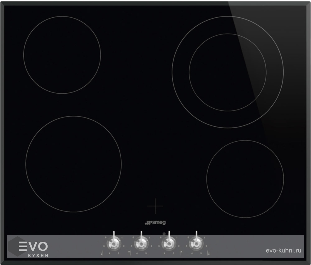 Электрическая варочная панель SMEG SE364EMTB — панель выполнена из черной стеклокерамики, оснащена четырьмя варочными зонами различного диаметра и мощности. Выбор интенсивности нагрева производится по 6 ступеням. Индикация остаточного тепла информирует, что температура конфорки выше 60°C и ее можно использовать для подогрева готовых блюд, или для растапливания масла, шоколада.