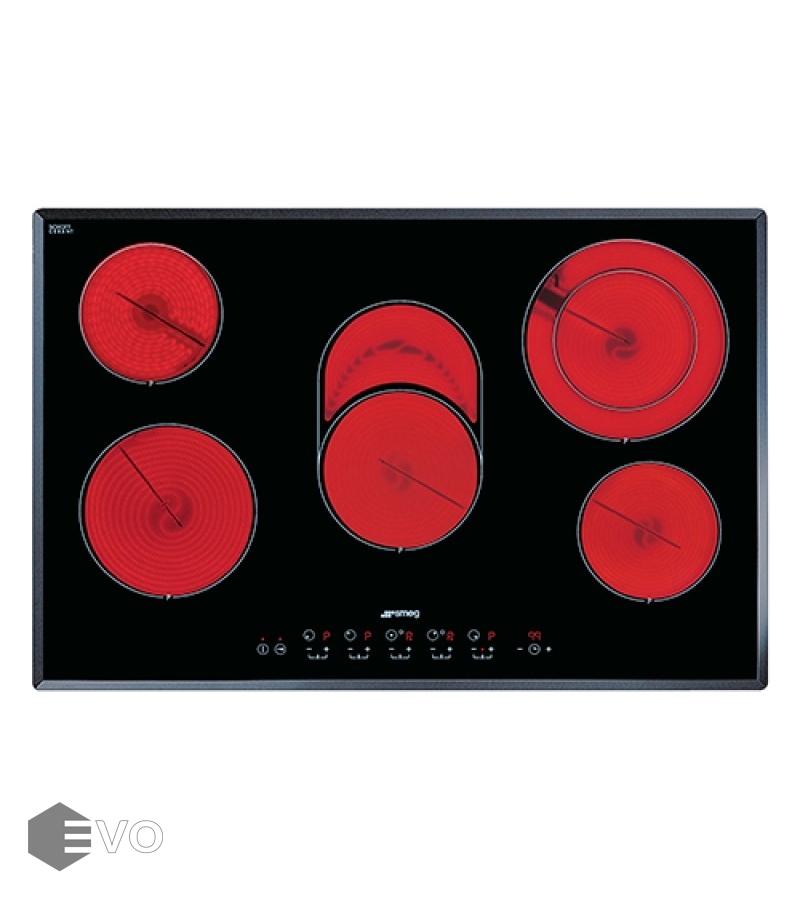Электрическая варочная панель SMEG SE385EMTB — панель выполнена из черной стеклокерамики, оснащена 5 варочными зонами различного диаметра и мощности. Выбор интенсивности нагрева производится по 9 ступеням. Индикация остаточного тепла информирует, что температура конфорки выше 60°C и ее можно использовать для подогрева готовых блюд, или для растапливания масла, шоколада.