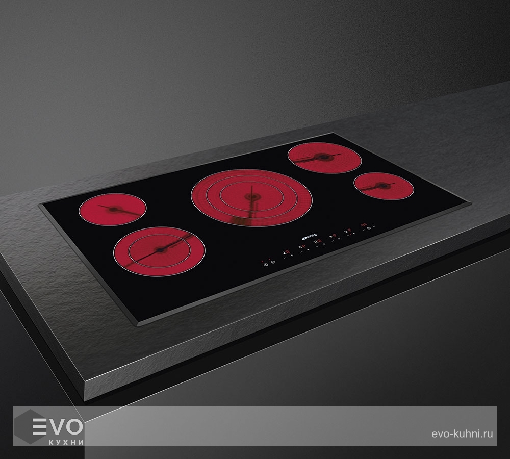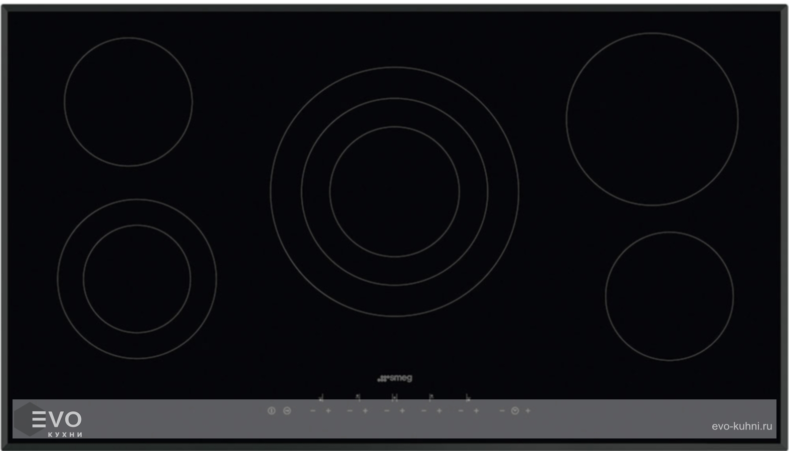 Электрическая варочная панель SMEG SE395ETB — панель выполнена из черной стеклокерамики, оснащена 5 варочными зонами различного диаметра и мощности. Выбор интенсивности нагрева производится по 9 ступеням. Индикация остаточного тепла информирует, что температура конфорки выше 60°C и ее можно использовать для подогрева готовых блюд, или для растапливания масла, шоколада.