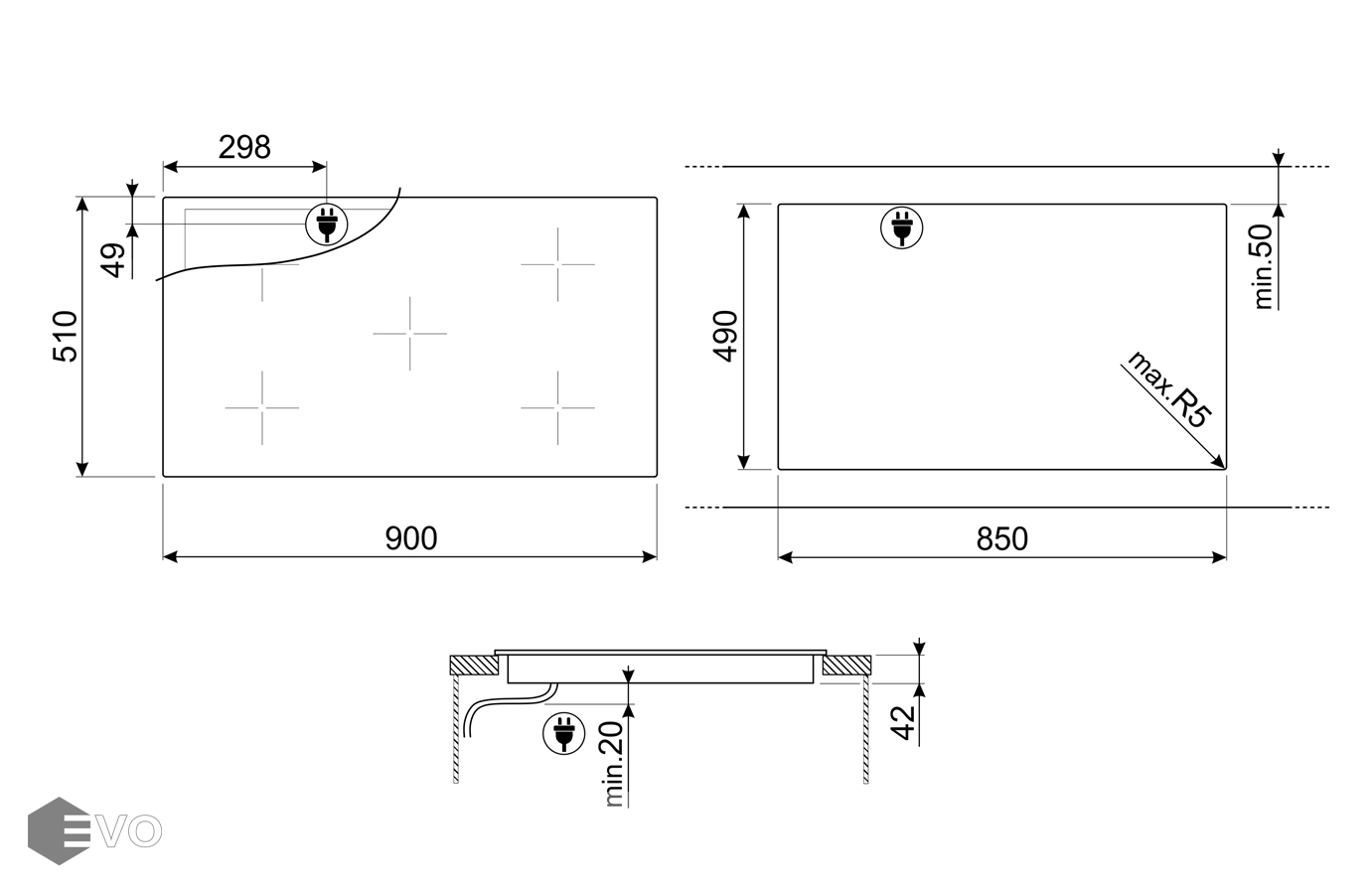 - Центральная конфорка, диаметр мм/кВт: 150-216-290/1,2-2,2-2,7