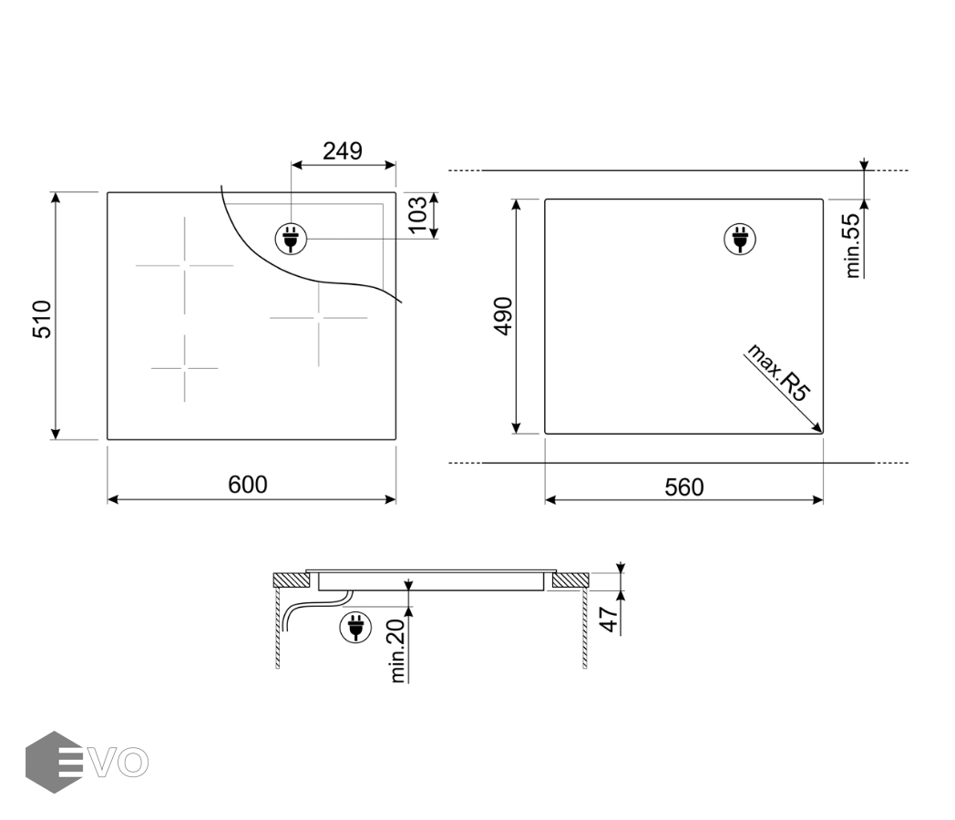 - Правая конфорка, диаметр мм/кВт: 180-280/1,8. BOOSTER, кВт: 3,5-3,6
