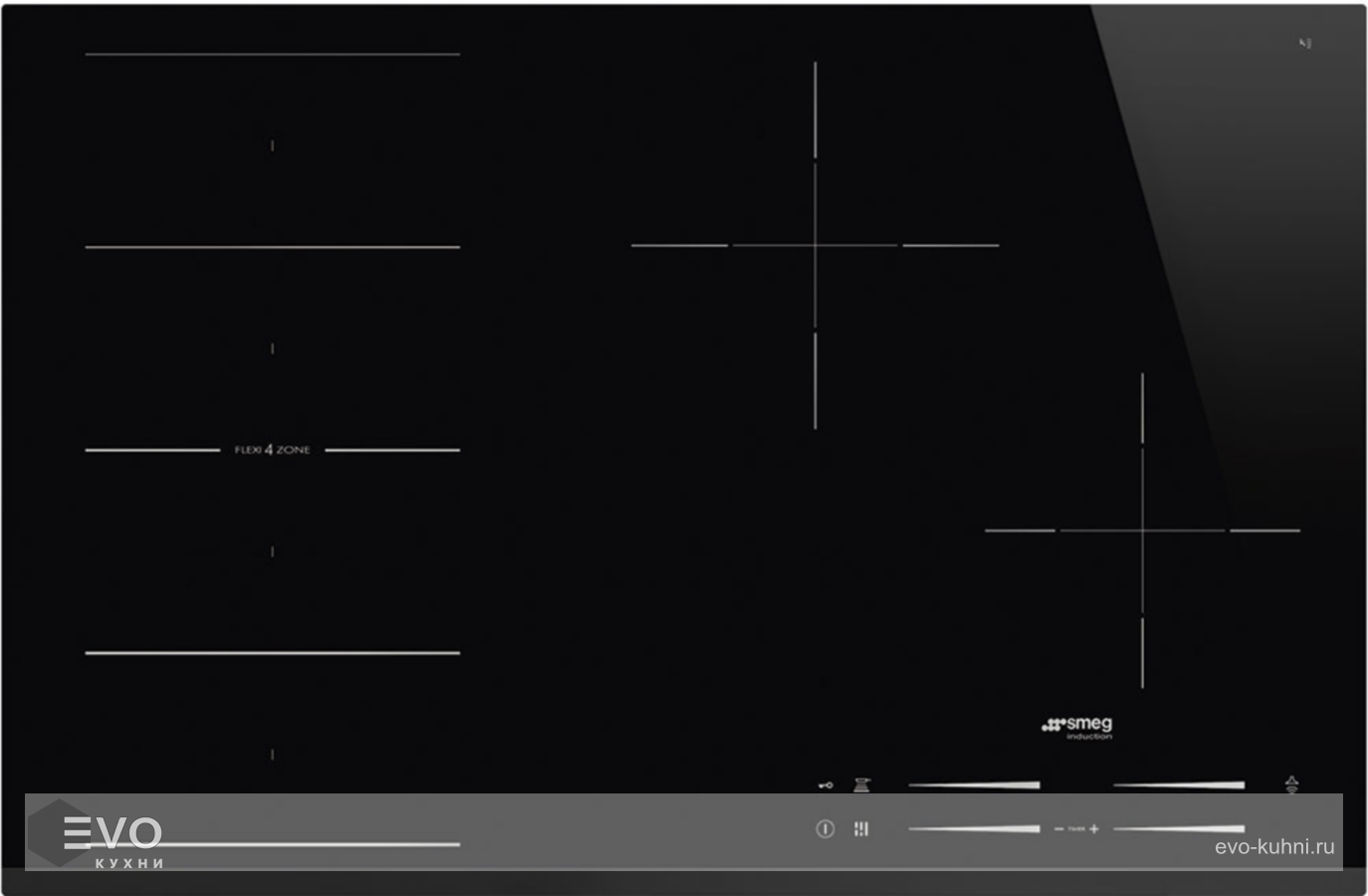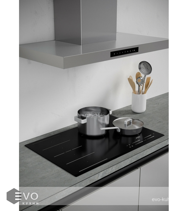 Индукционная варочная панель SMEG SI1F7845B — на панели расположены 4 зоны нагрева с возможностью объединения, когда нужно готовить в посуде нестандартной формы. На сенсорном дисплее одним движением пальца можно выбрать режим мощности из 14 предложенных.