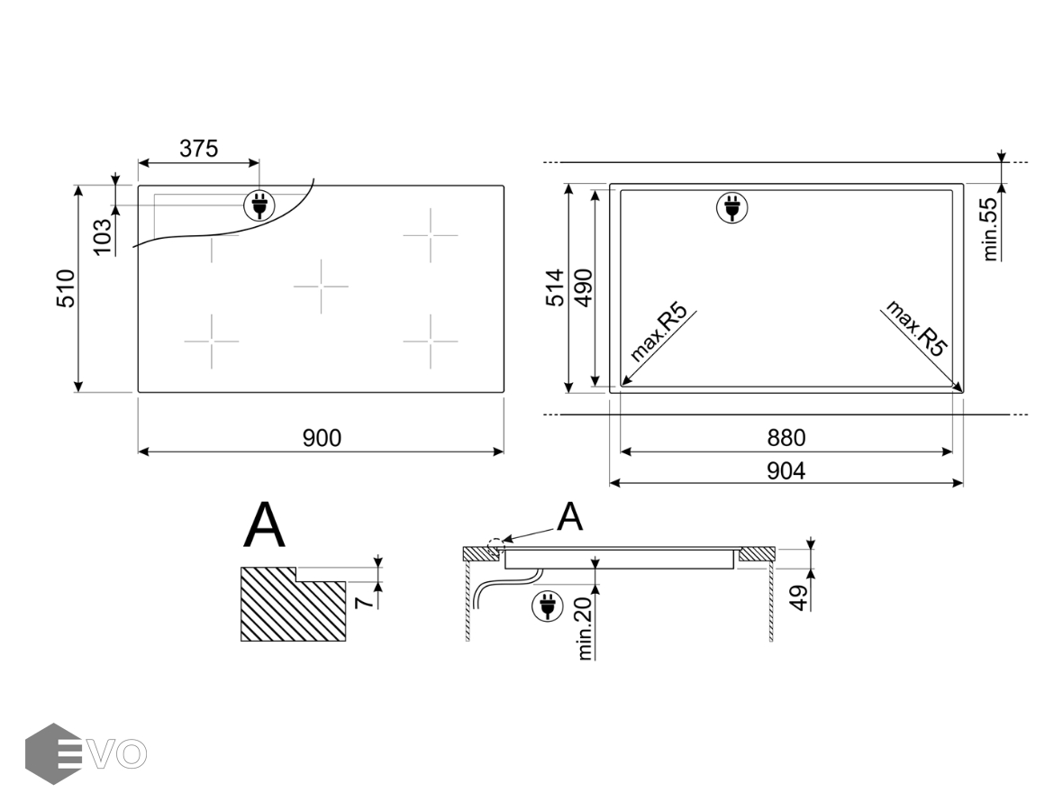 - Центральная конфорка, диаметр мм/кВт: 180-280/1,8-2,8. BOOSTER, кВт: 3,6-3,7