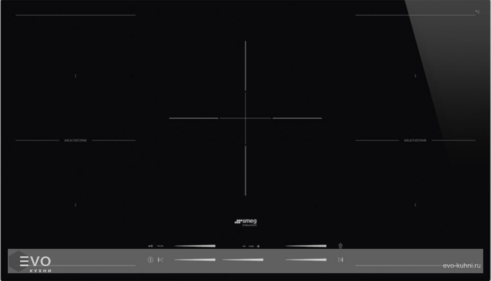 Индукционная варочная панель SMEG SI2M7953D — на панели расположены 5 зоны нагрева с возможностью объединения, когда нужно готовить в посуде нестандартной формы. На сенсорном дисплее одним движением пальца можно выбрать режим мощности из 14 предложенных.