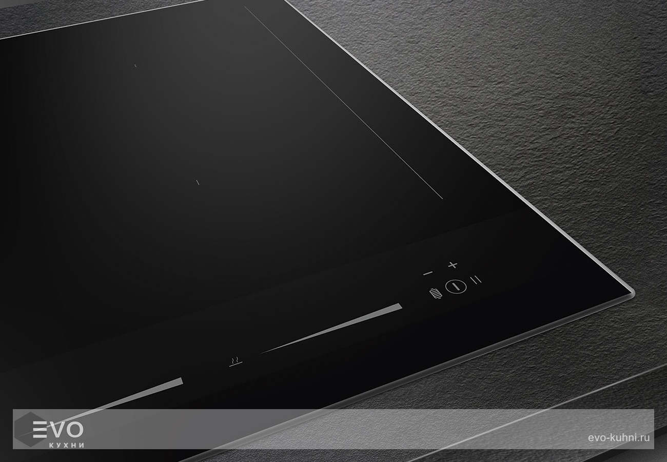 Для каждой зоны предусмотрена собственная панель управления Touch-control со слайдером для выбора степени нагрева. Для выбора степени нагрева от 1 до 9, а также для включения или отключения конфорки достаточно провести по слайдеру или коснуться его. Независимые таймеры с автоматическим отключением в конце приготовления оповещают о завершении работы звуковым сигналом.