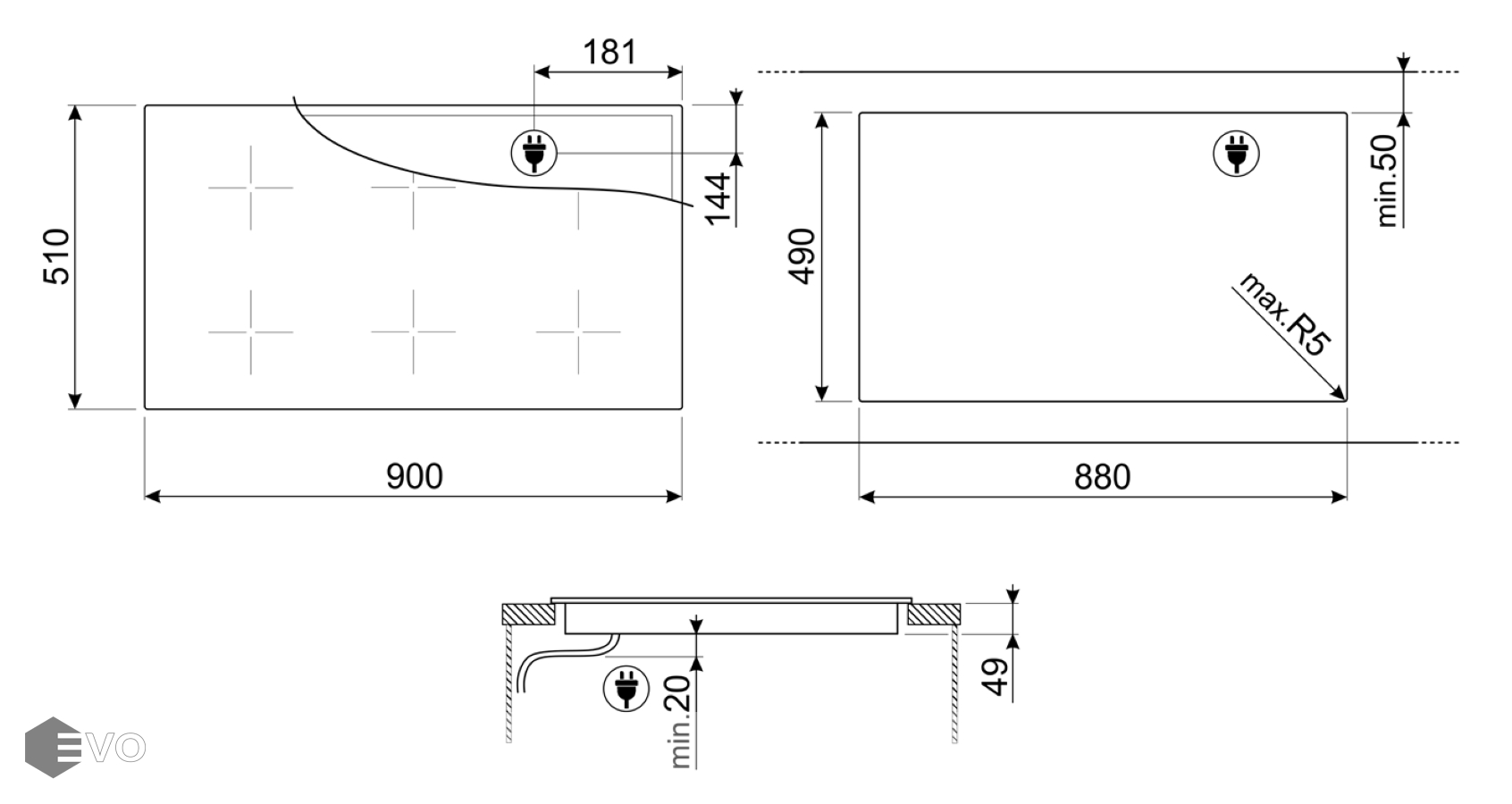 Модель шириной 90 см из стильной и прочной черной стеклокерамики с прямым краем встраивается в столешницу сверху или вровень с ней. Сенсорное управление Touch control предусматривает приготовления на 9 уровнях мощности. Каждая зона снабжена собственным слайдером для выбора степени нагрева и таймером окончания приготовления с автоматическим отключением, и подачей звукового сигнала.