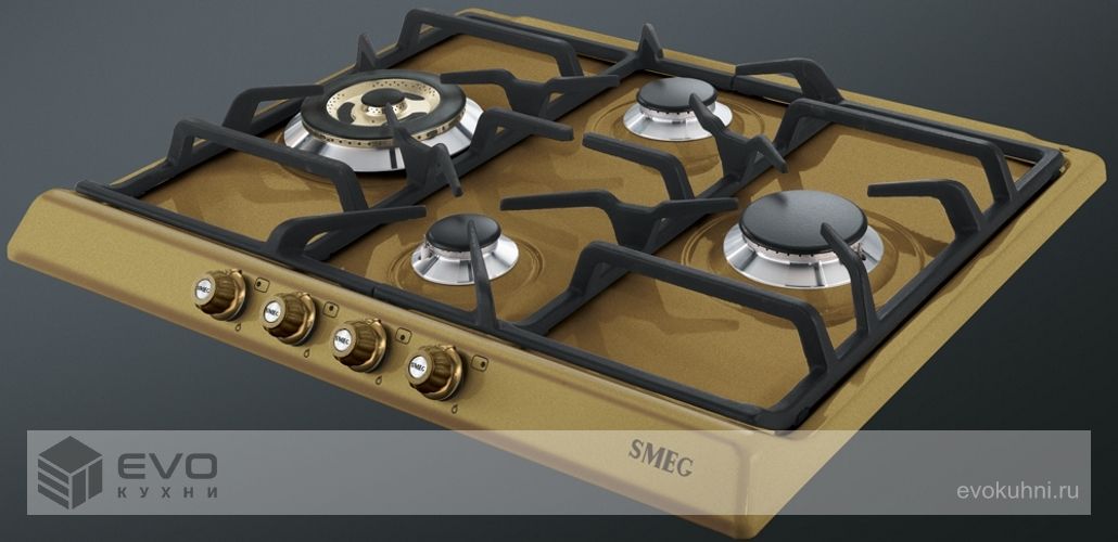 - Цвет поворотных переключателей конфорок: латунь