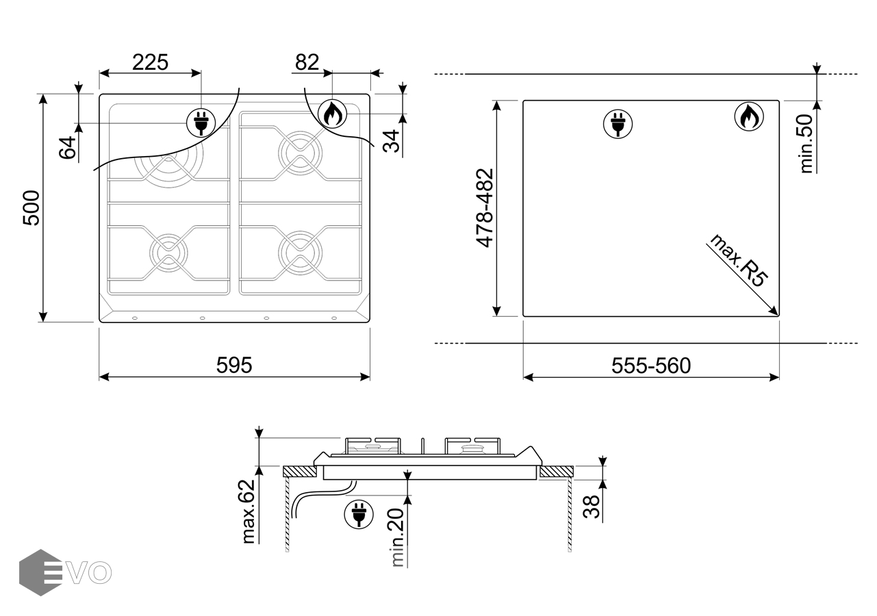 - Ширина, мм: 595