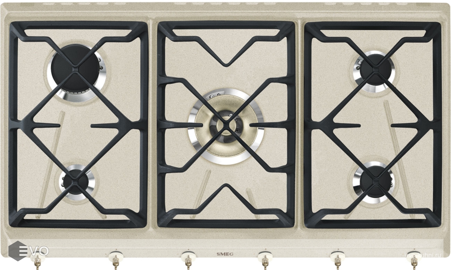 Газовая варочная панель SMEG SRV896AVOGH2 – газовая варочная поверхность из эмалированной стали предназначена для домашнего применения (приготовление и нагрев блюд). Установка возможна на различные жаростойкие материалы. Имеет пять конфорок с функцией автоматического электроподжига: 1 маленькая, 2 средние, 1 большая, 1 WOK. Управление осуществляется при помощи поворотных регуляторов.