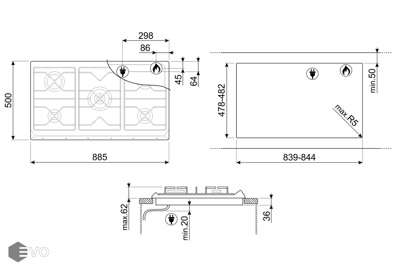 - Ширина, мм: 885