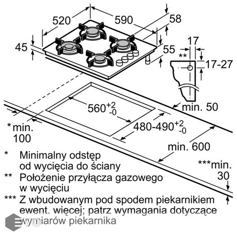 Размеры встраивания (ВхШхГ), мм: | 58х560х480 |