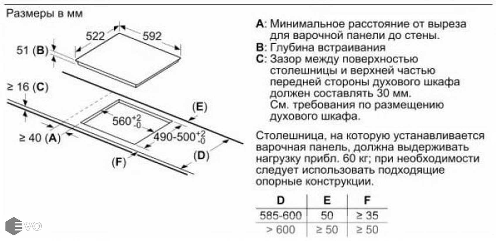 Размеры встраивания (ВхШхГ), мм: | 50х560х490 |