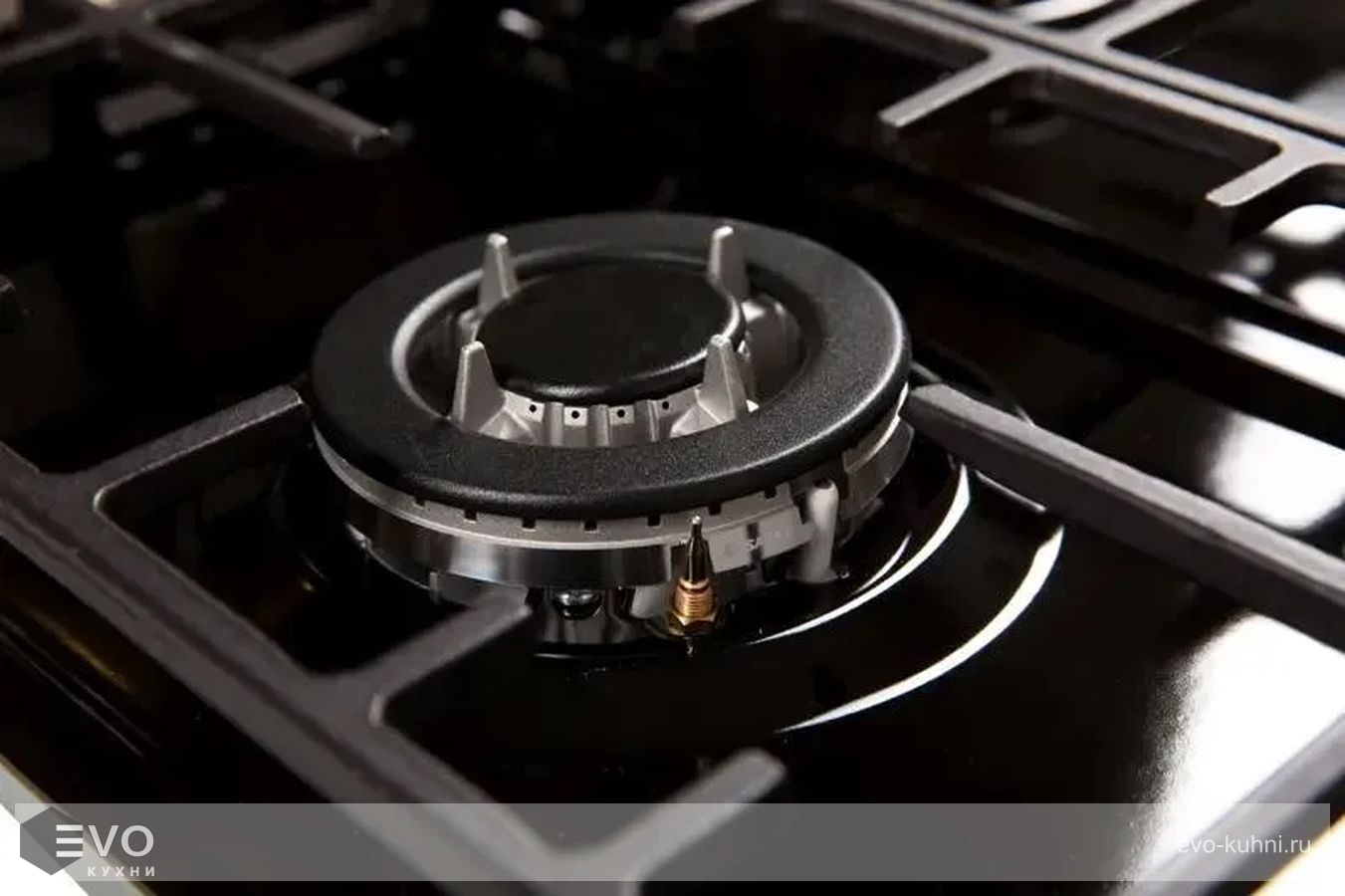 - Левая ближняя конфорка газовая, мощность 900 Вт, одноконтурная