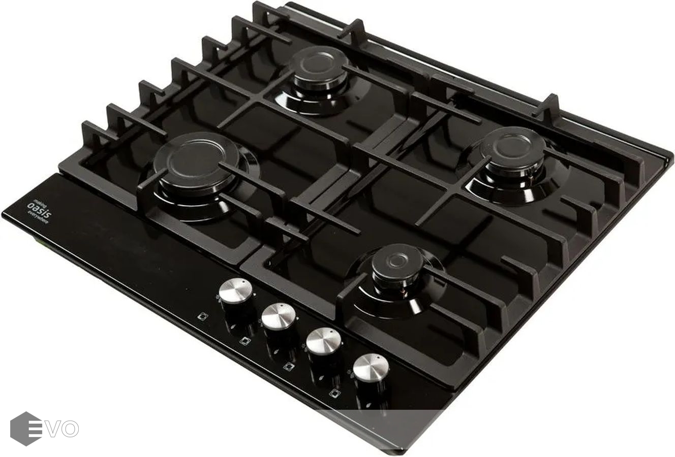 • Правая ближняя конфорка: газовая, мощность 900 Вт, одноконтурная