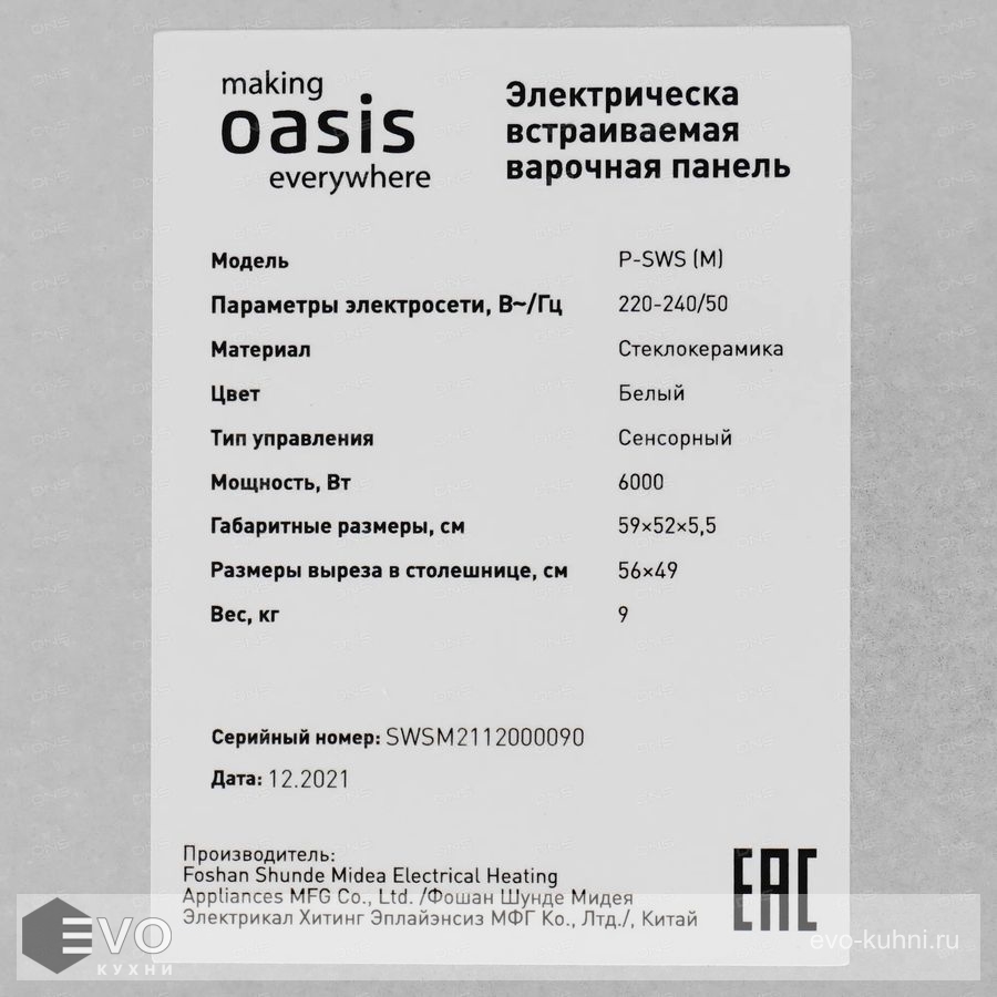 Варочная панель Oasis P-SWS