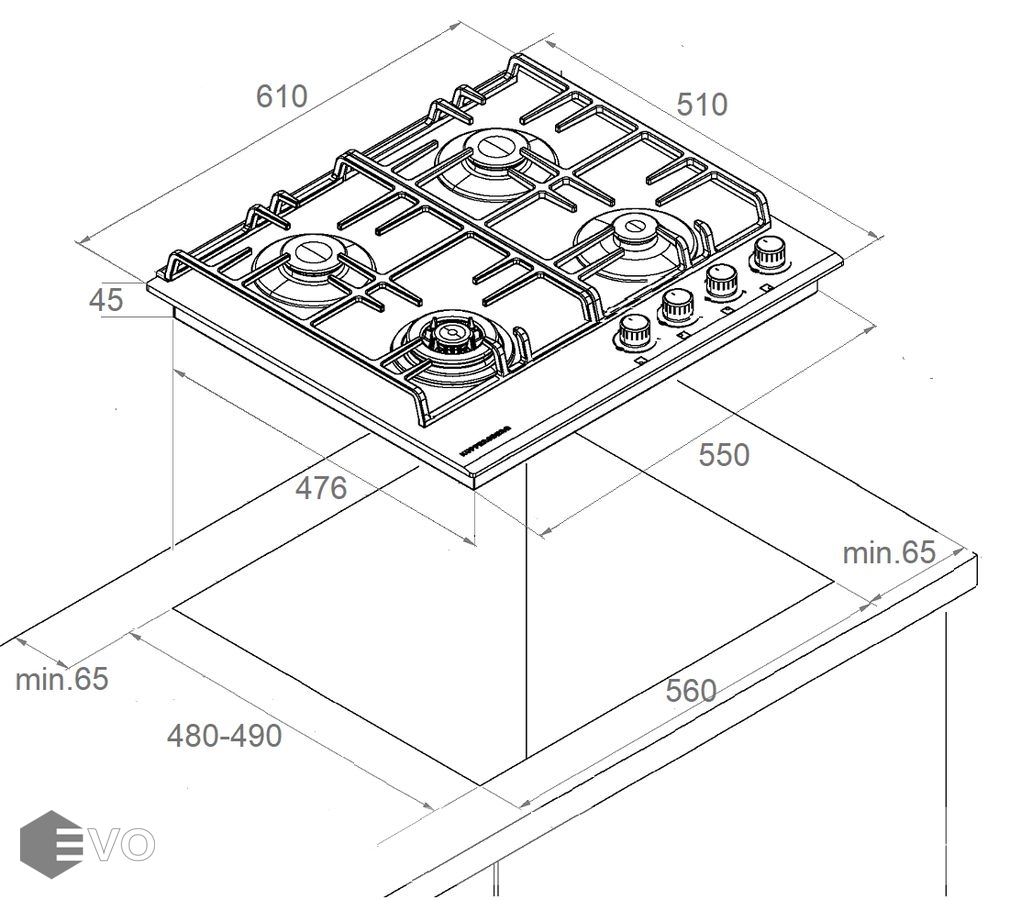 Размеры встраивания (ВхШхГ), мм: | 65х560х490 |