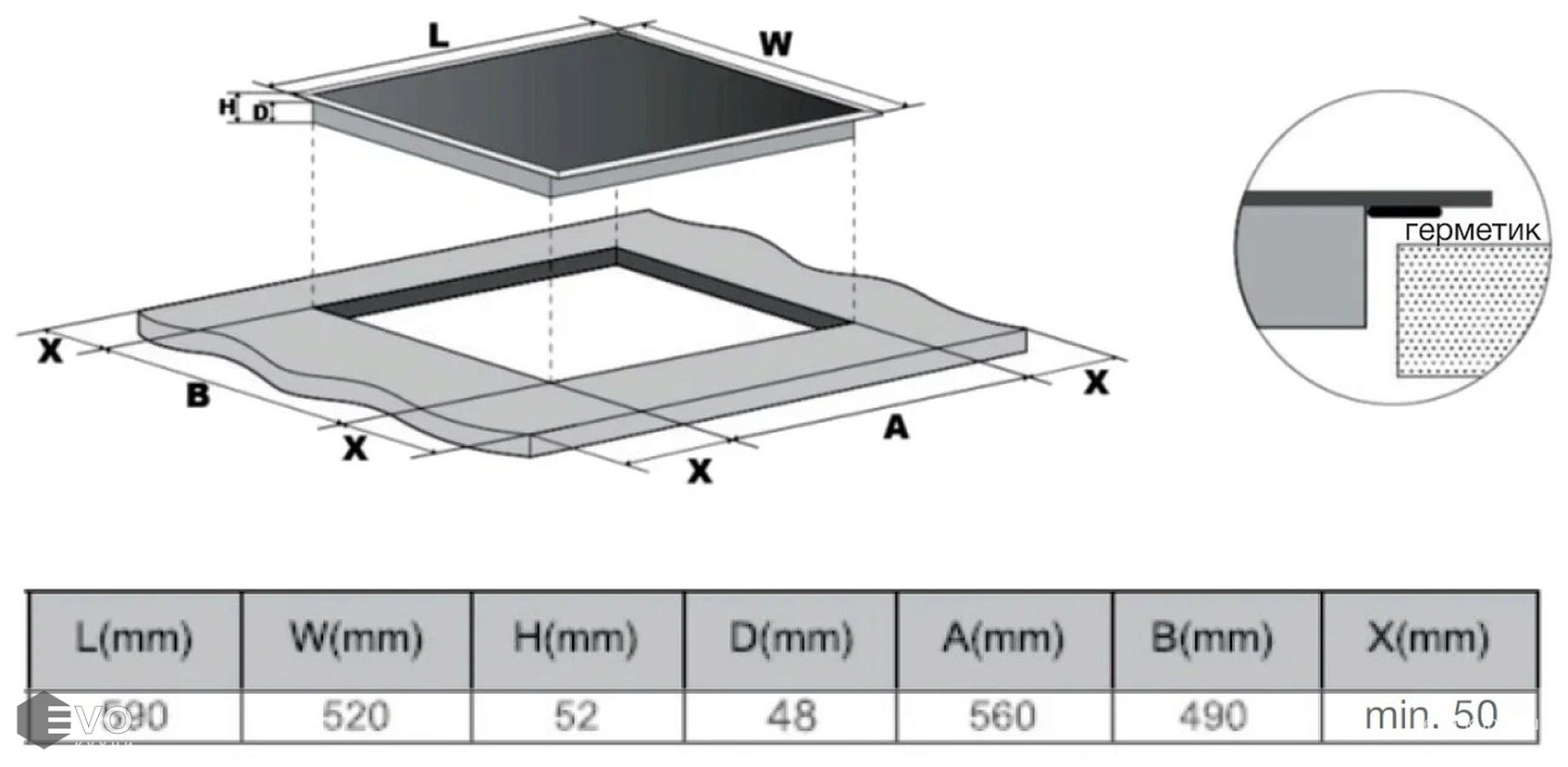 Размеры встраивания (ВхШхГ), мм: | 97х560х490 мм |