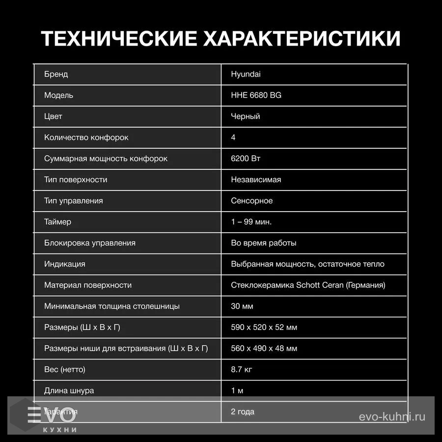 Варочная панель Hyundai HHE 6680 BG