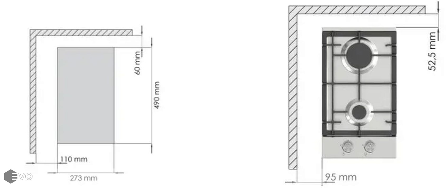 - Размеры ниши для встраивания (ШхГ) 273х490 мм