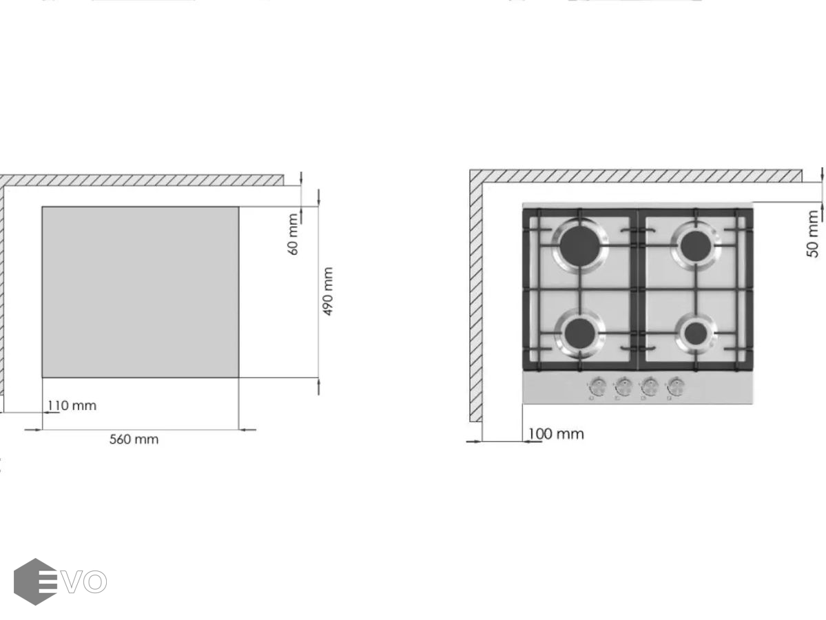 | Размеры встраивания (ВхШхГ), мм: | 52х560х490 мм |