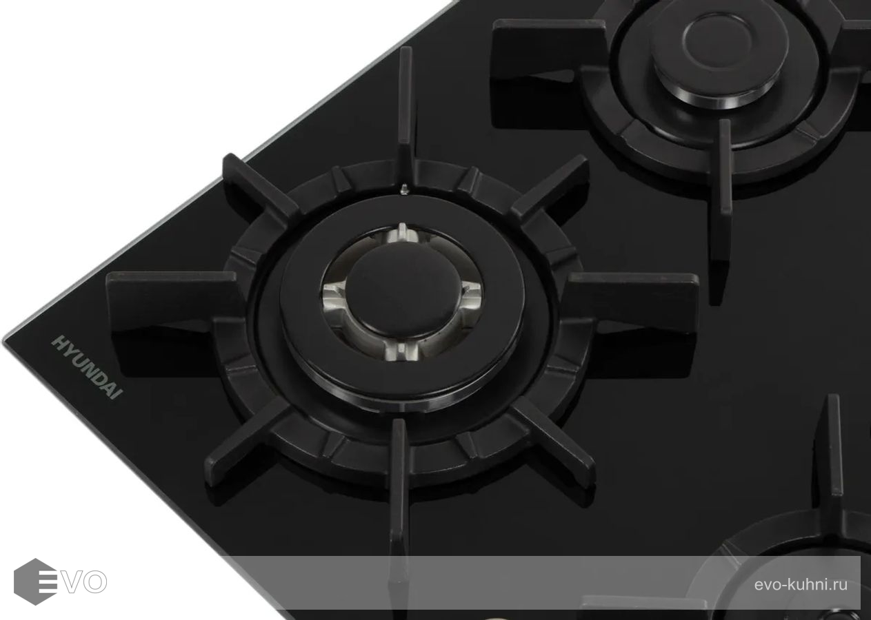- Правая ближняя конфорка газовая, мощность 900 Вт, одноконтурная
