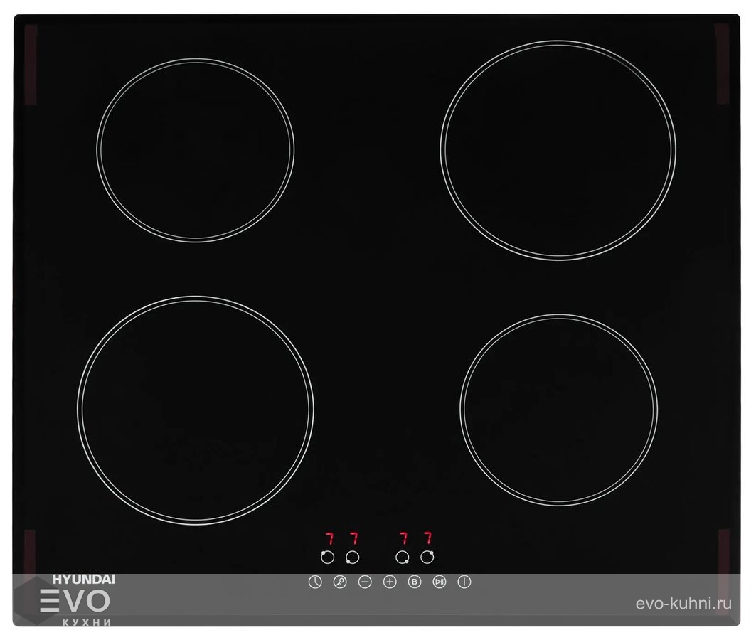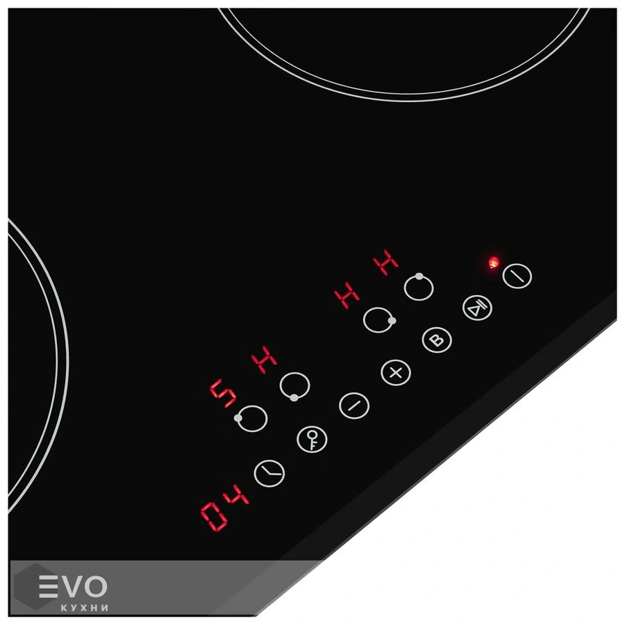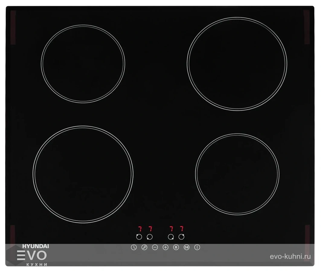- Мощность каждой конфорки: 1.5/Boost 2 кВт (задняя левая), 1.5/Boost 2 кВт (передняя правая), 2/Boost 2.5 кВт (задняя правая), 2/Boost 2.5 кВт (передняя левая)