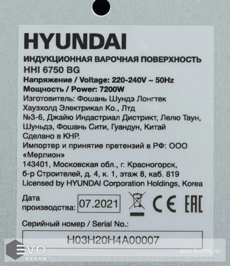 - Модель: HHI 6750 BG