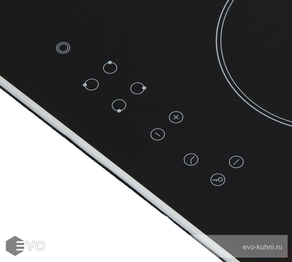 | Функции: | Индукционные конфорки Таймер конфорок Автоматика закипания Блокировка панели управления Индикатор остаточного тепла |