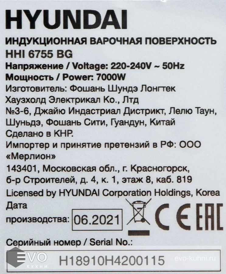 - Модель: HHI 6755 BG