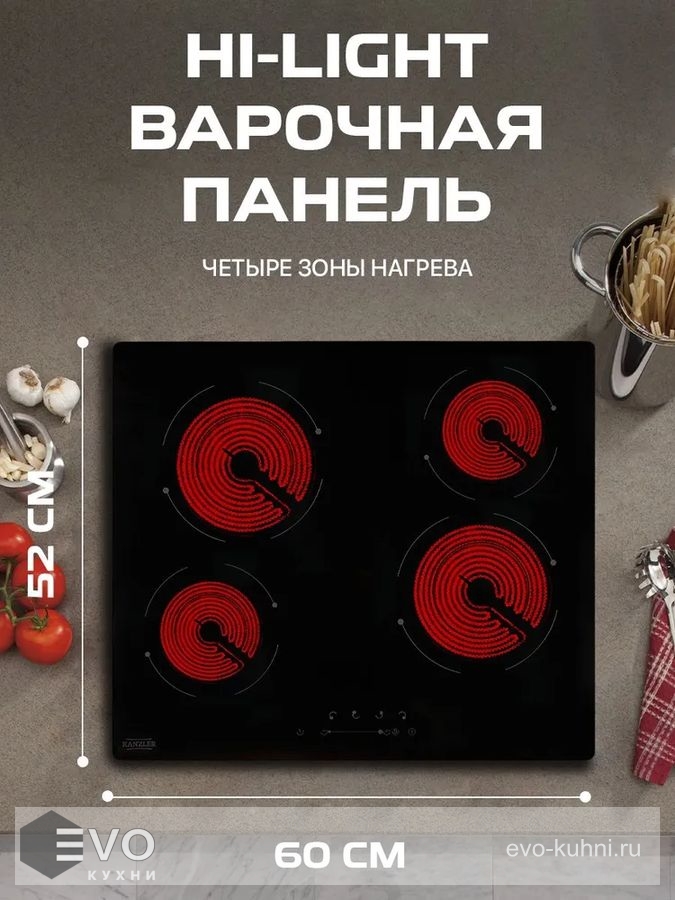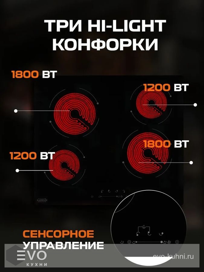 Функции: | Защитное отключение конфорок Индикатор остаточного тепла |