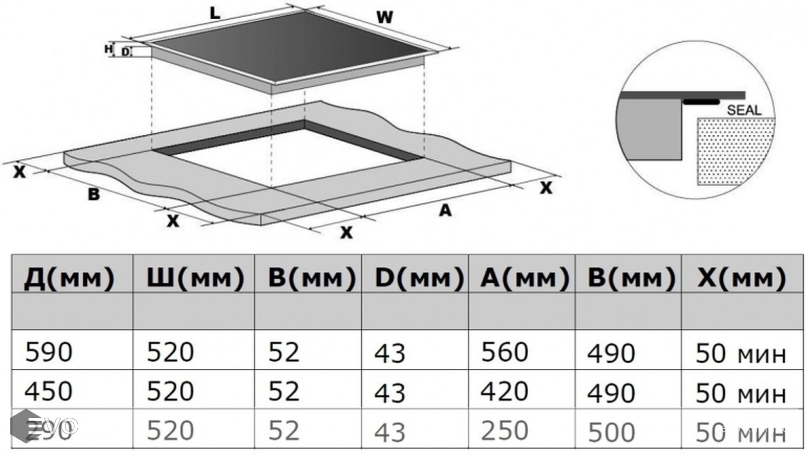 Размеры встраивания (ВхШхГ), мм: | -/570/500 мм |