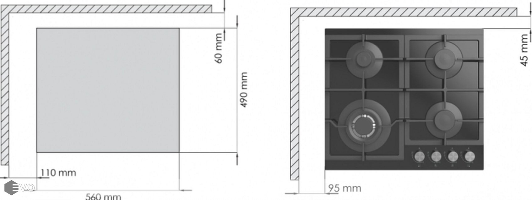 - Горелки: 2х1.7 кВт, 1х0.9 кВт, 1х3.3 кВт (WOK – с тройным рядом пламени)