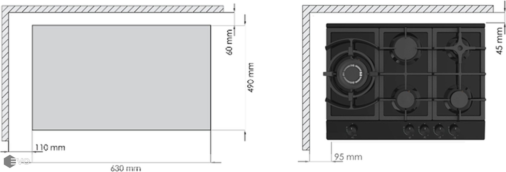 - Горелки: 2х1.7 кВт, 1х0.9 кВт, 1х3.0 кВт, 1х3.3 кВт (WOK – с тройным рядом пламени)