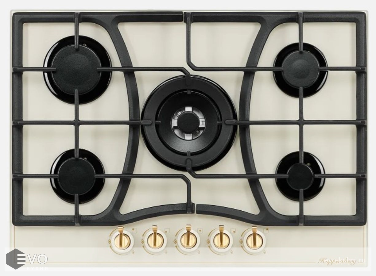 Для кухонного помещения, стилизованного под популярное направление High-Tech, бежевая газовая варочная поверхность FG 703 C Bronze станет одним из наиболее удачных вариантов. Данная модель изготовлена из прочного закаленного стекла легкой очистки, оснащена фурнитурой бронзового цвета.