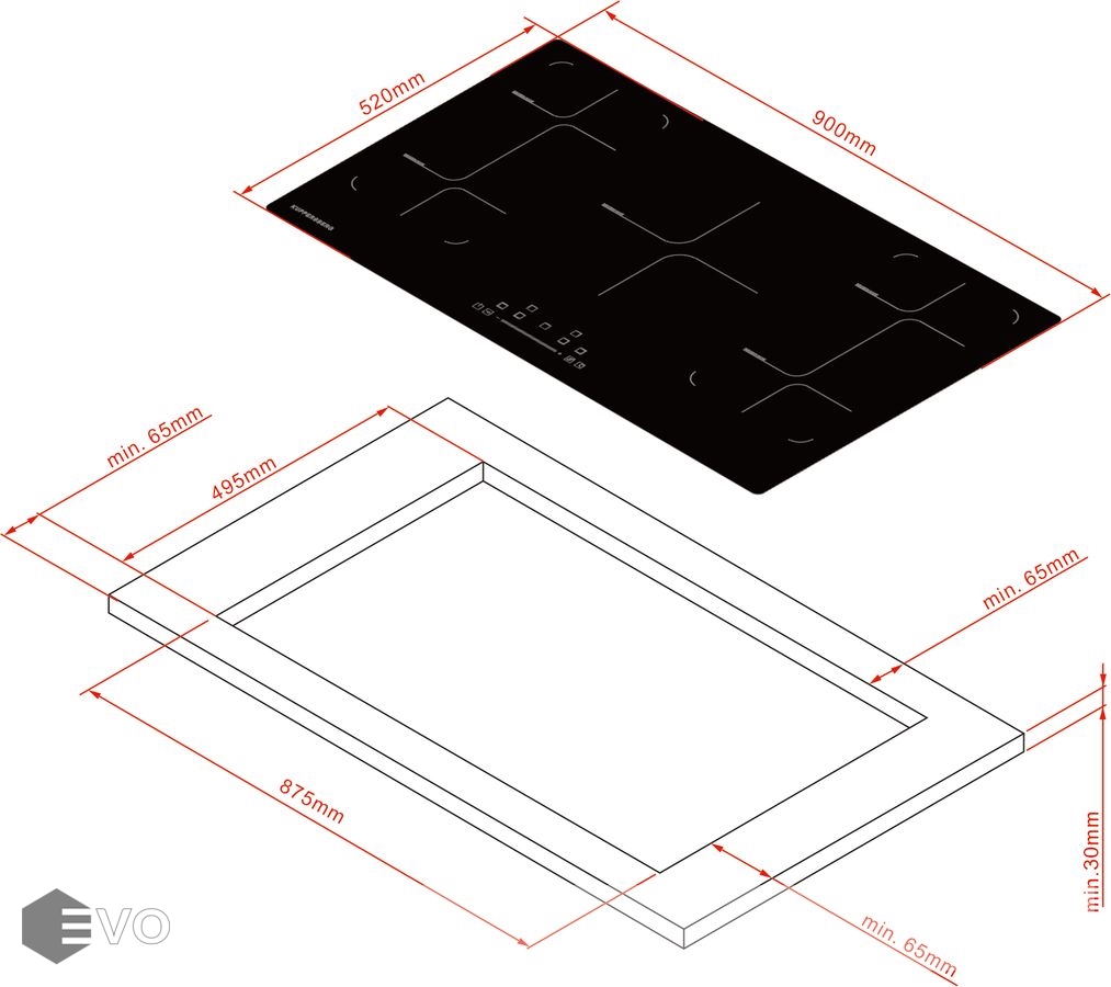 - Размер ниши для встраивания (ШхГ), мм: 875×495