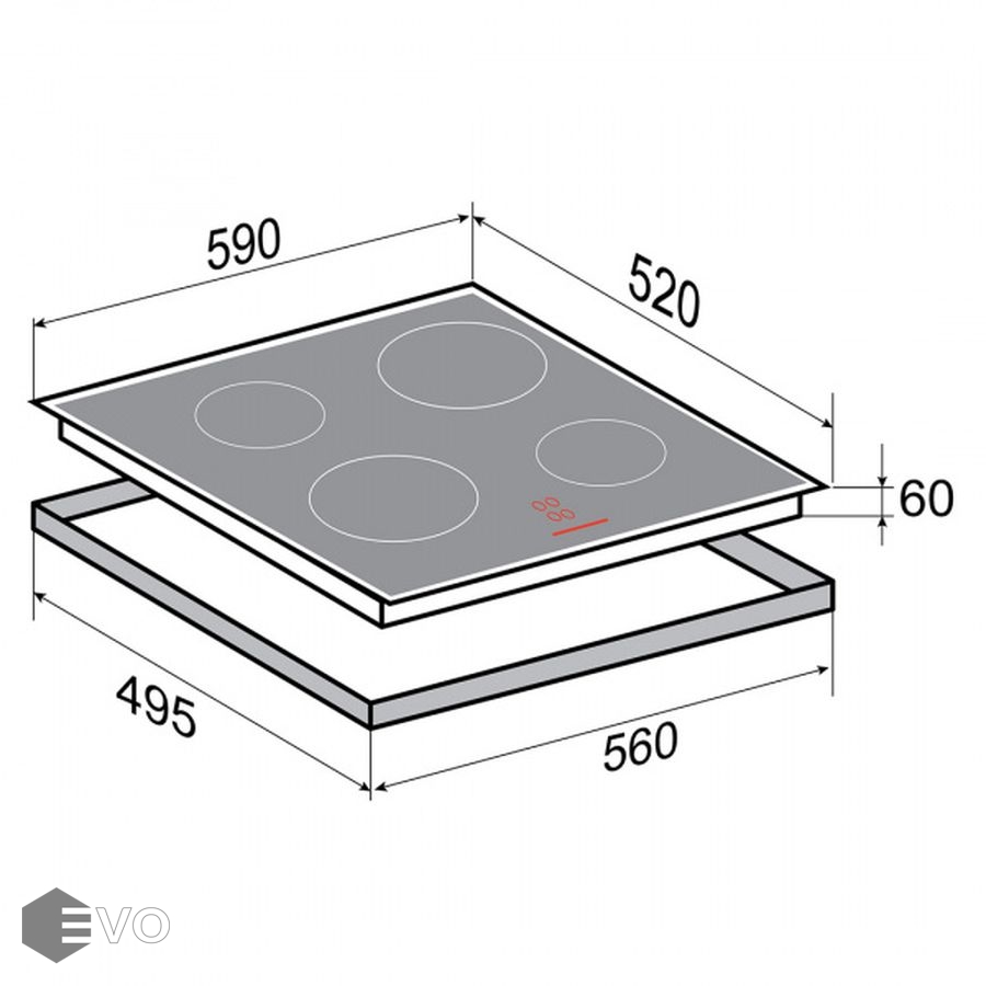 Функции: Индукционные конфорки Таймер конфорок Блокировка панели управления Защитное отключение конфорок Индикатор остаточного тепла Поддержание температуры