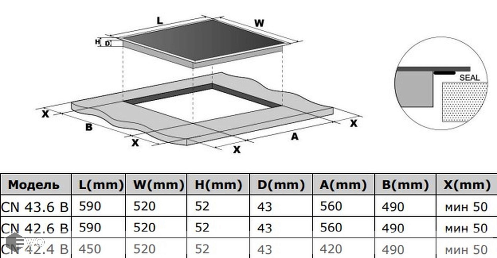 Размеры встраивания (ВхШхГ), мм: | 43х560х490 |