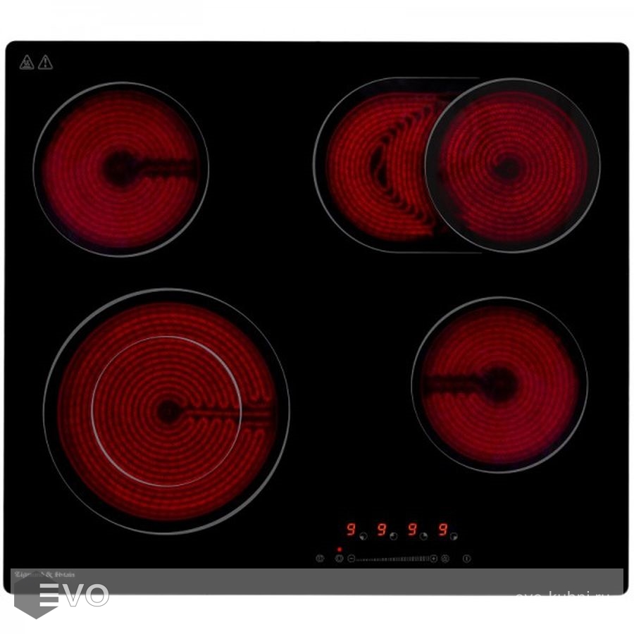 | Функции: | Таймер конфорок Блокировка панели управления Защитное отключение конфорок Индикатор остаточного тепла Контурная конфорка Овальная зона нагрева Поддержание температуры |