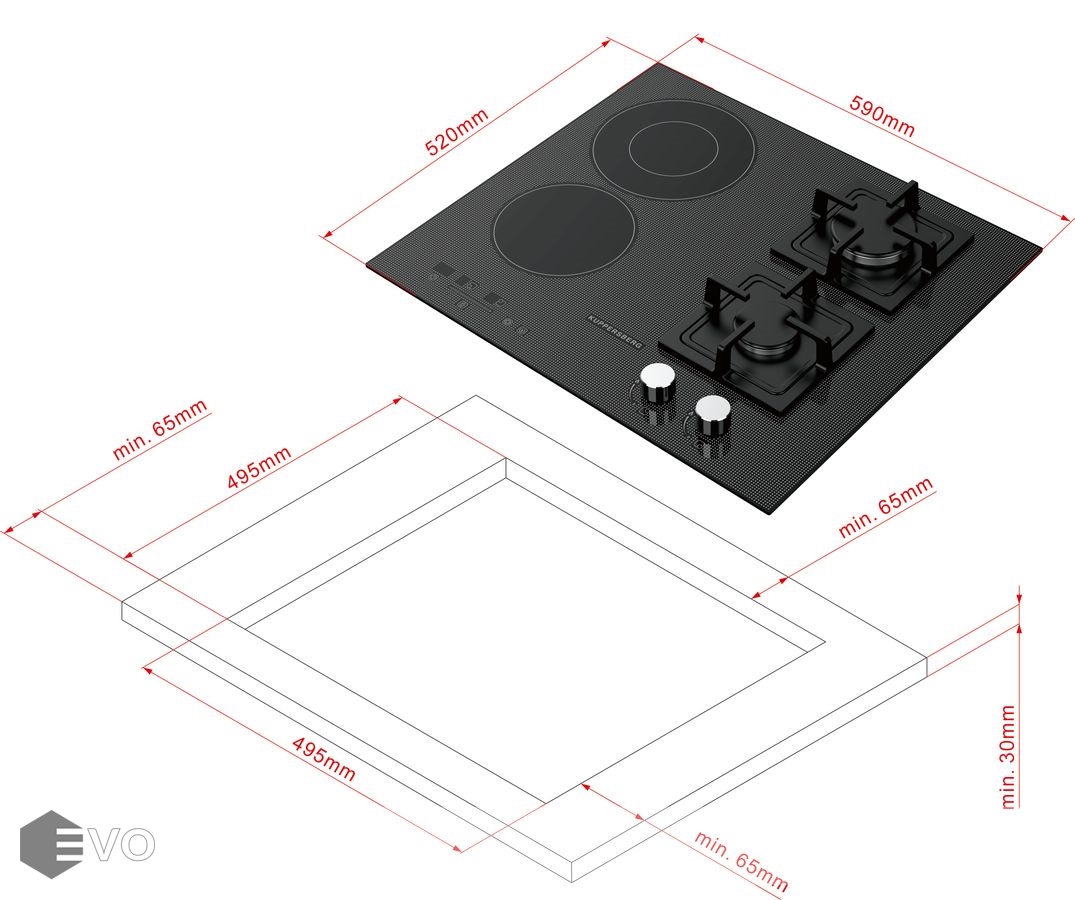 Размеры встраивания (ВхШхГ), мм: | 65х495х495 |