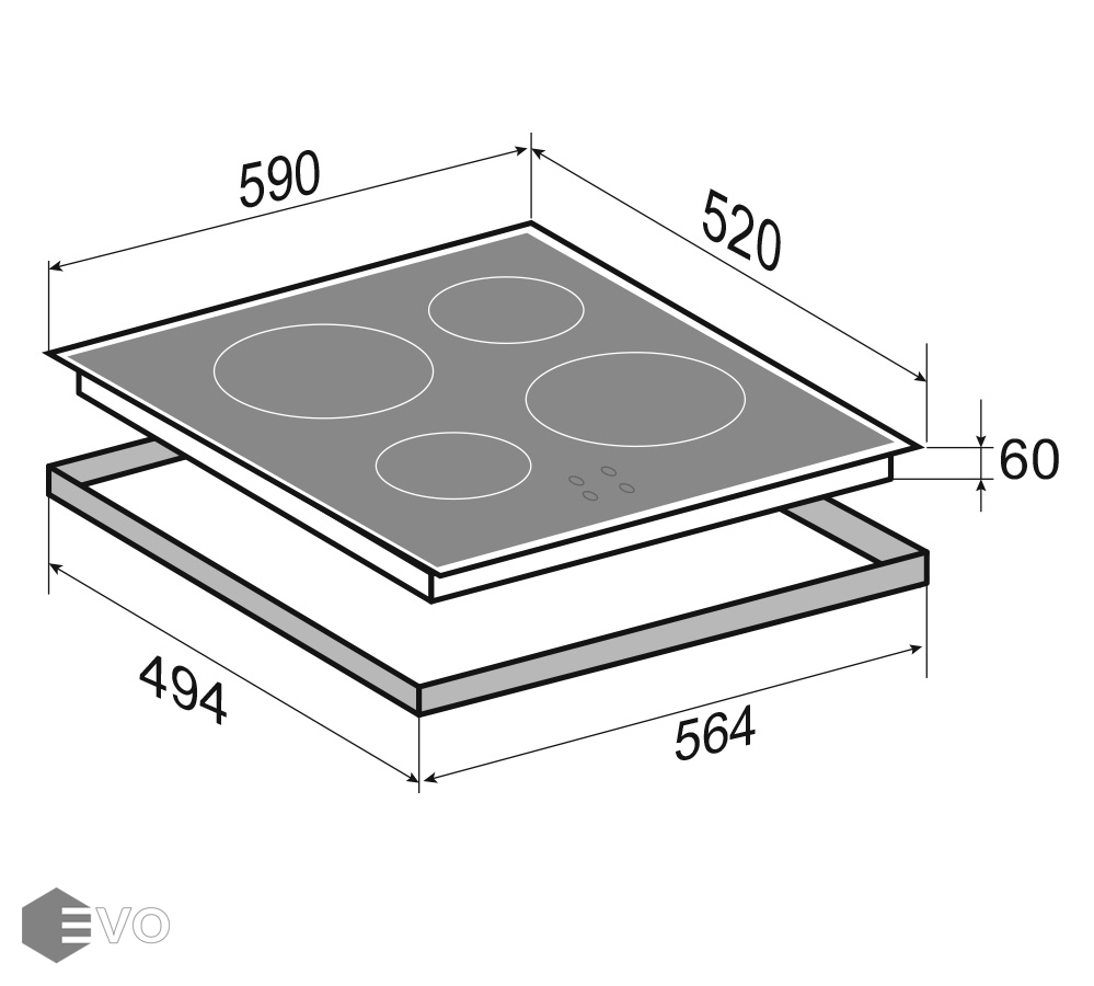| Размеры встраивания (ВхШхГ), мм: | 60х564х494 |